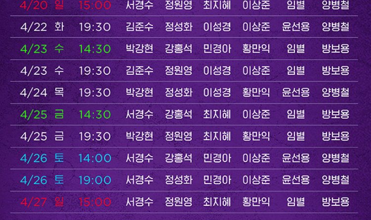 뮤지컬 알라딘 6차 출연진들의 캐스팅 일정을 궁금해하시는 분들이 있죠. 일정보고 본인이 좋아하는 배우가 나오는 날에 예매하시면 되겠습니다.